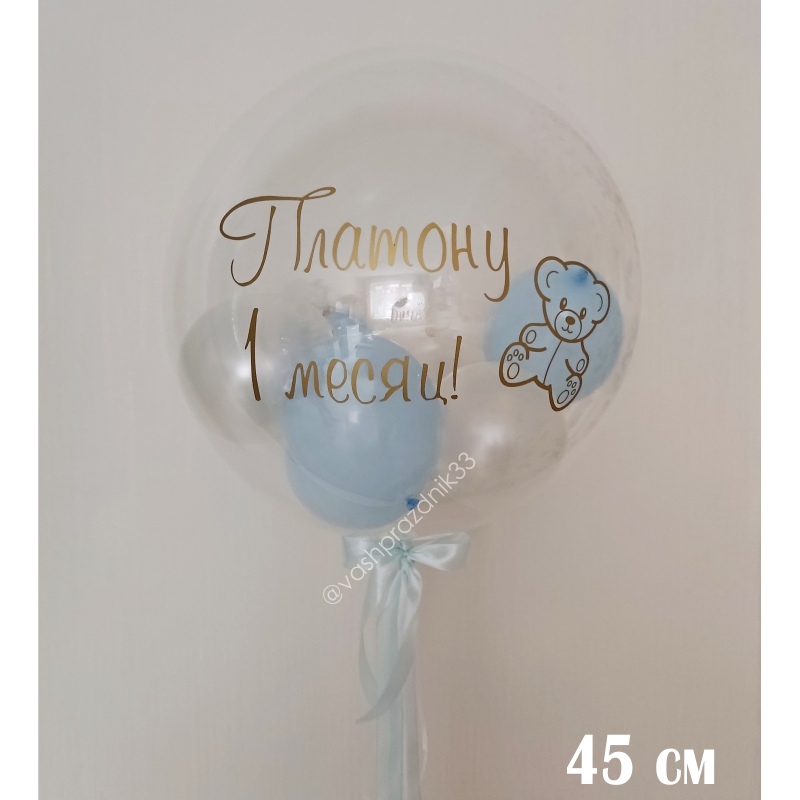 • Шар - БАБЛС С ПЕРЬЯМИ И НАДПИСЬЮ, • Размер шара - 45 см. |