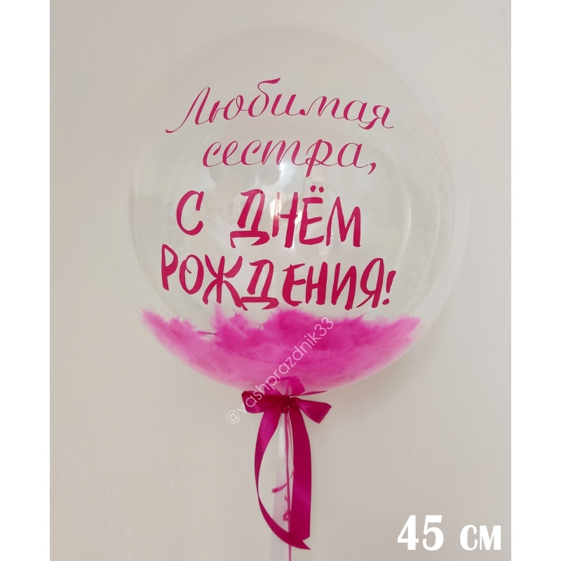 • Шар - БАБЛС С ПЕРЬЯМИ И НАДПИСЬЮ, • Размер шара - 45 см. |