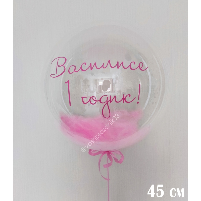 • Шар - БАБЛС С ПЕРЬЯМИ И НАДПИСЬЮ, • Размер шара - 45 см. |