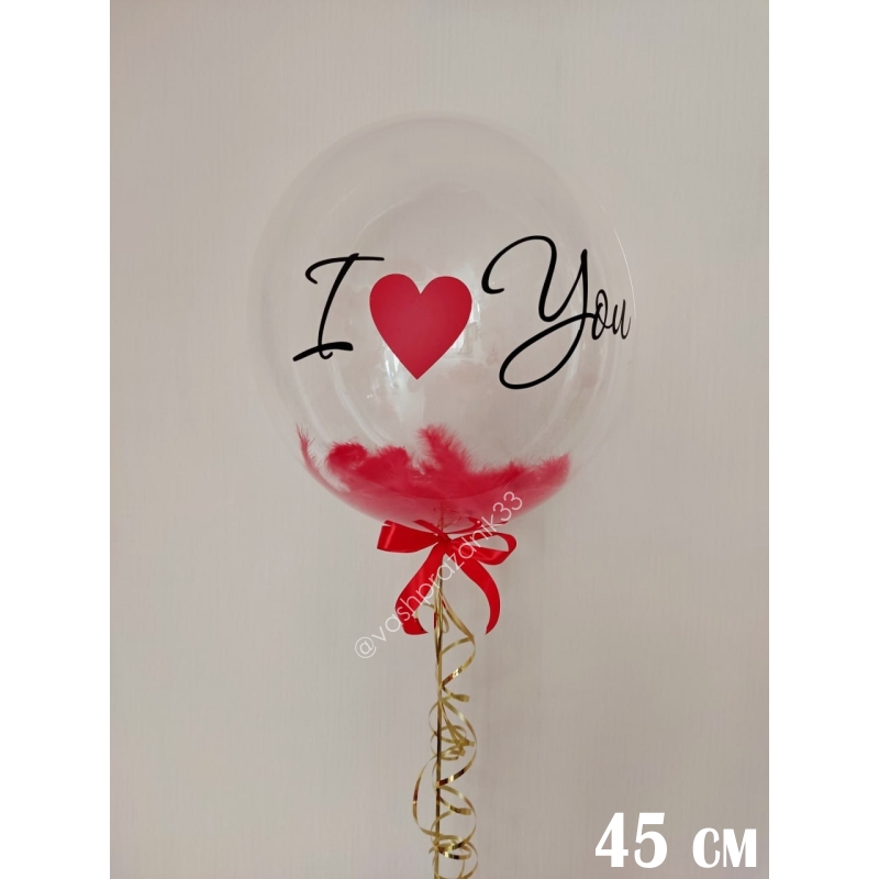 • Шар - БАБЛС С ПЕРЬЯМИ И НАДПИСЬЮ, • Размер шара - 45 см. |