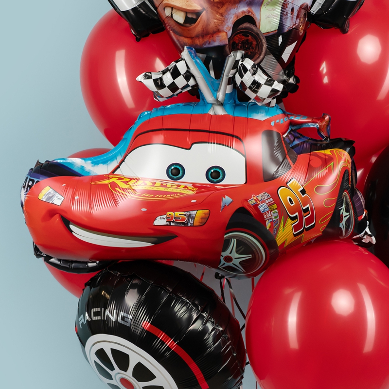 • Шар - ТАЧКИ, МОЛНИЯ МАККВИН С ФЛАЖКАМИ, • Размер шара - 71 см. |