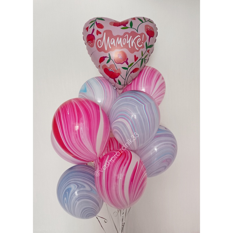 • Шар - СУПЕР АГАТ - 8 шт., • Шар - СЕРДЦЕ, МАМОЧКА - 1 шт. |