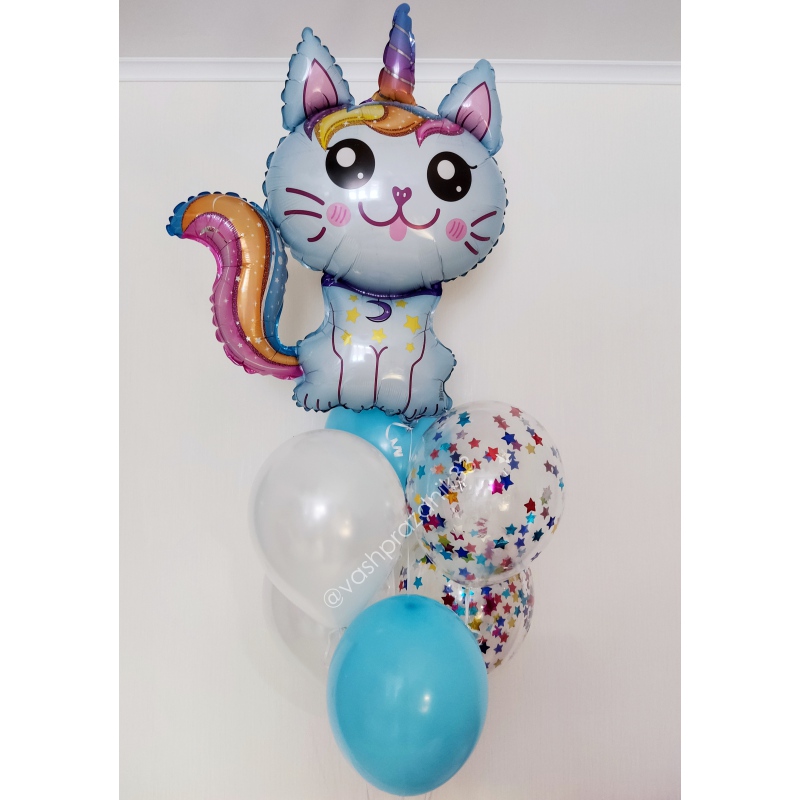 • Шар - ПАСТЕЛЬ - 2 шт., • Шар - МЕТАЛЛИК - 2 шт., • Шар - КОНФЕТТИ - 2 шт., • Шар - ФИГУРА, КОТЕНОК-ЕДИНОРОГ - 1 шт. |