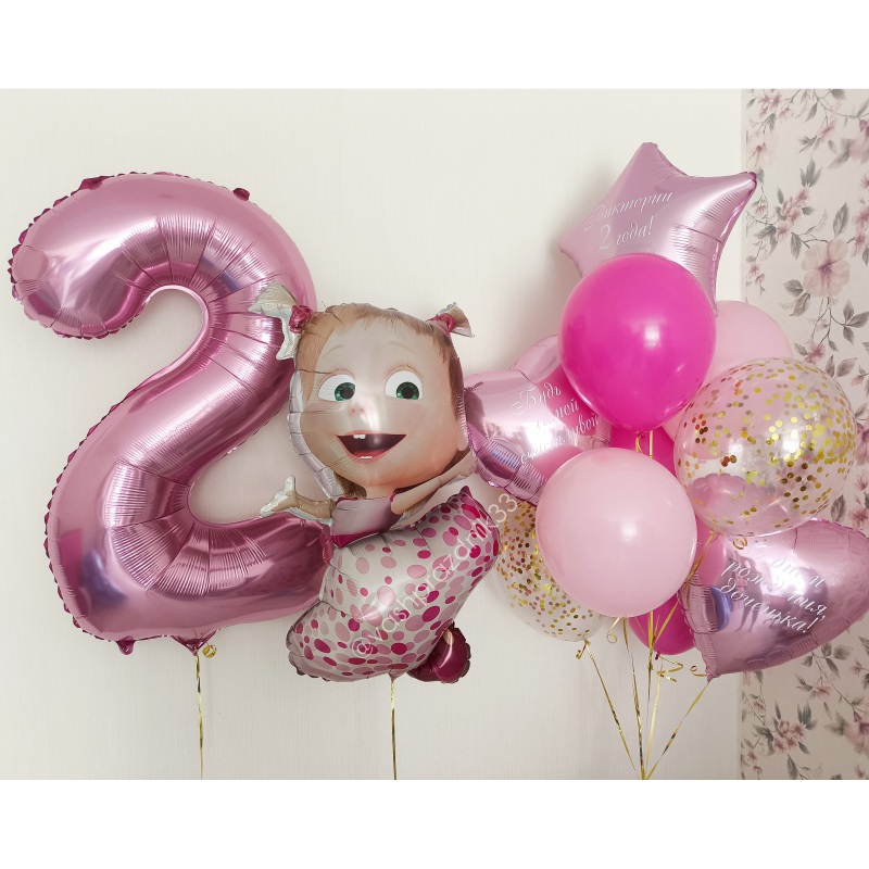 • Шар - ПАСТЕЛЬ - 5 шт., • Шар - КОНФЕТТИ - 2 шт., • Шар - ЗВЕЗДА С НАДПИСЬЮ - 1 шт., • Шар - СЕРДЦЕ С НАДПИСЬЮ - 2 шт., • Шар - ФИГУРА, МАША С ХВОСТИКАМИ - 1 шт., • Шар - ЦИФРА, РОЗОВАЯ - 1 шт. |