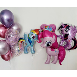 • Шар - ХРОМ - 6 шт., • Шар - КОНФЕТТИ - 2 шт., • Шар - СЕРДЦЕ, МИЛАЯ ПОНИ - 1 шт., • Шар - ФИГУРА, ПИНКИ ПАЙ - 1 шт., • Шар - ФИГУРА, ИСКОРКА - 1 шт., • Шар - ФИГУРА, РАДУГА ДЭШ - 1 шт., |