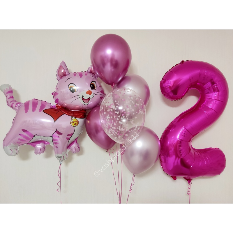 • Шар - ХРОМ - 4 шт., • Шар - КОНФЕТТИ - 1 шт., • Шар - ФИГУРА, ЛЮБИМЫЙ КОТЁНОК - 1 шт., • Шар - ЦИФРА, ФУКСИЯ - 1 шт. |