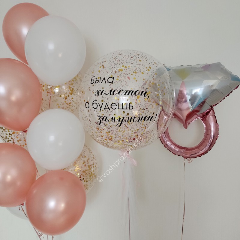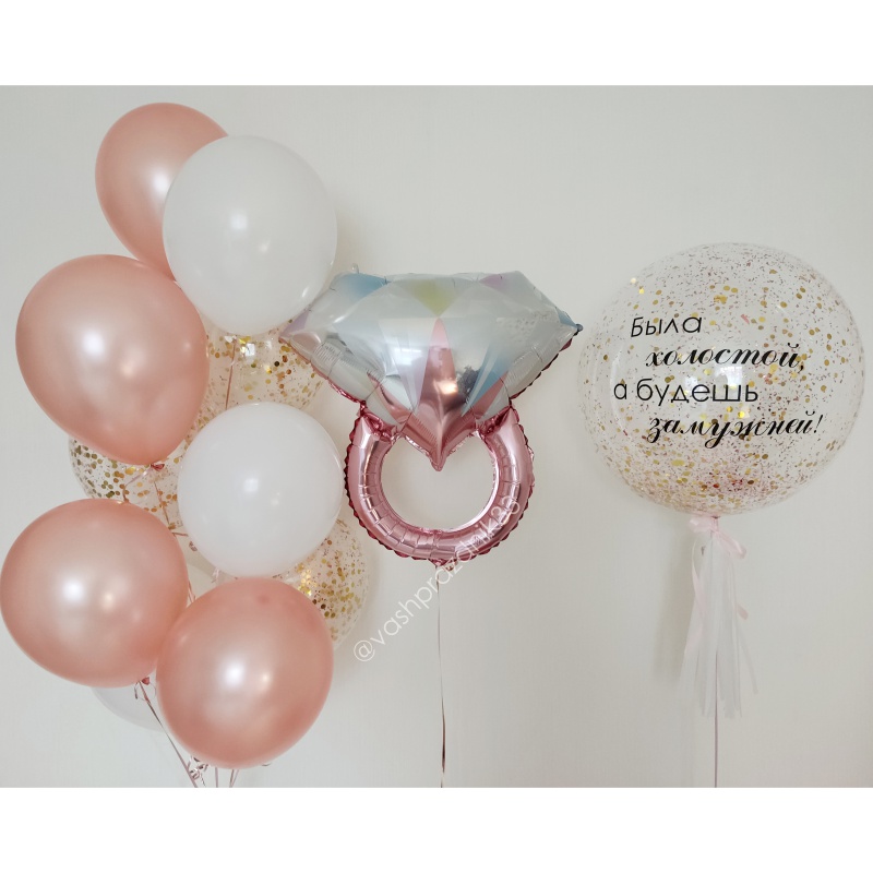 • Шар - ПАСТЕЛЬ - 3 шт., • Шар - МЕТАЛЛИК - 4 шт., • Шар - КОНФЕТТИ - 3 шт., • Шар - ФИГУРА, КОЛЬЦО С БРИЛЛИАНТОМ - 1 шт., • Шар - ГИГАНТ С КОНФЕТТИ - 1 шт. |