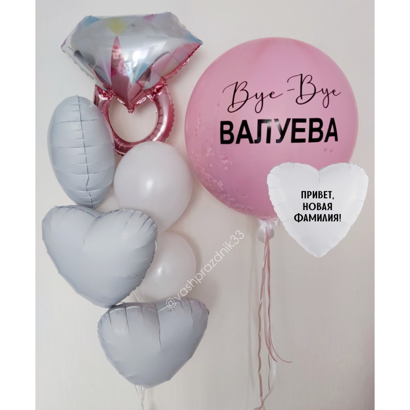 • Шар - ПАСТЕЛЬ - 2 шт., • Шар - СЕРДЦЕ - 3 шт., • Шар - ФИГУРА, КОЛЬЦО - 1 шт., • Шар - ГИГАНТ С СЕРДЦЕМ ВНУТРИ - 1 шт. |
