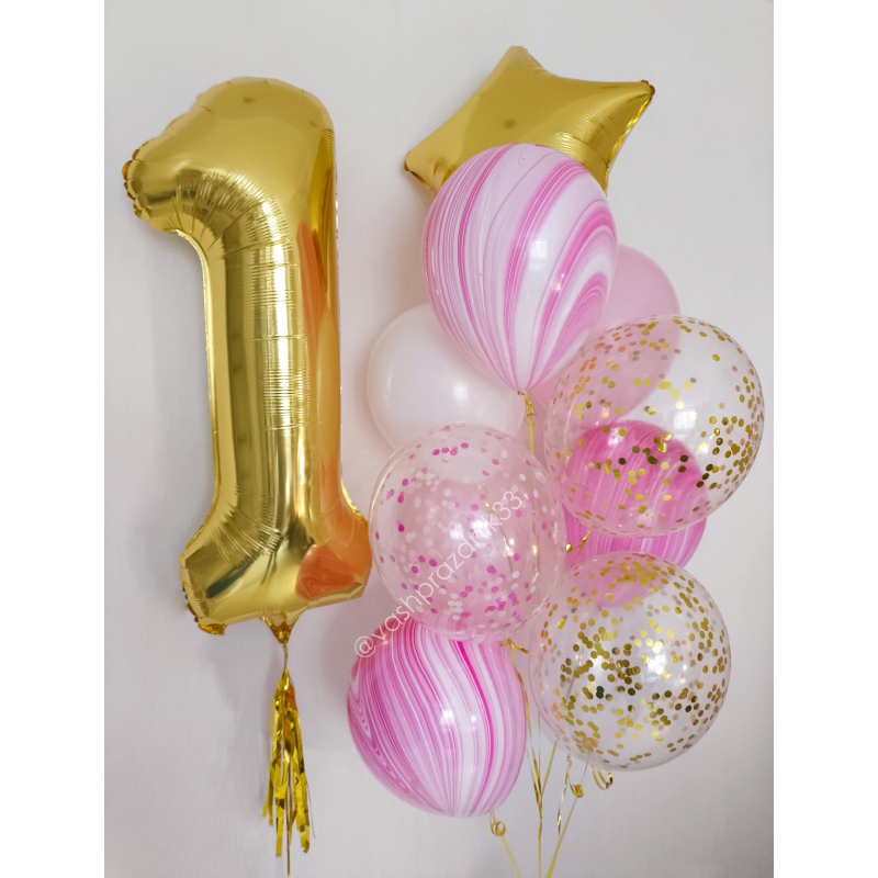 • Шар - ПАСТЕЛЬ - 3 шт., • Шар - КОНФЕТТИ - 3 шт., • Шар - СУПЕР АГАТ - 3 шт., • Шар - ЗВЕЗДА - 1 шт., • Шар - ЦИФРА, ЗОЛОТО - 1 шт. |
