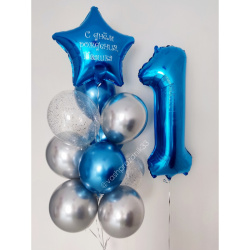 • Шар - ХРОМ - 7 шт., • Шар - КОНФЕТТИ - 2 шт., • Шар - ЗВЕЗДА С НАДПИСЬЮ - 1 шт., • Шар - ЦИФРА, СИНЯЯ - 1 шт. |