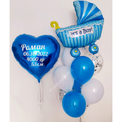 • Шар - ПАСТЕЛЬ - 6 шт., • Шар - КОНФЕТТИ - 2 шт., • Шар - ФИГУРА, КОЛЯСКА - 1 шт., • Шар - БОЛЬШОЕ СЕРДЦЕ С МЕТРИКОЙ - 1 шт. |