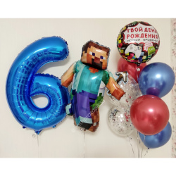 • Шар - ХРОМ - 5 шт., • Шар - КОНФЕТТИ - 2 шт., • Шар - КРУГ, ПИКСЕЛИ - 1 шт., • Шар - ФИГУРА, ПИКСЕЛИ - 1 шт., • Шар - ЦИФРА, СИНЯЯ - 1 шт. |