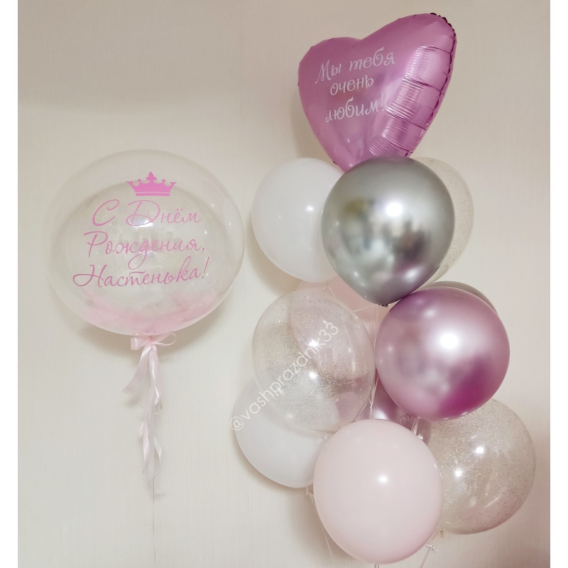 *Цветовая гамма любая, *Шары наполнены гелием, *Шары с обработкой, *Надписи на СЕРДЦЕ и БАБЛС любые. |