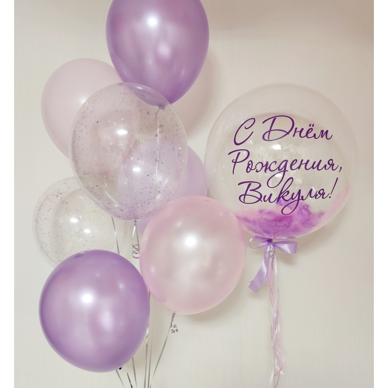 • Шар - МАКАРУНС - 2 шт., • Шар - ПЕРЛАМУТР - 3 шт., • Шар - КОНФЕТТИ - 2 шт., • Шар - БАБЛС С ПЕРЬЯМИ И НАДПИСЬЮ - 1 шт. |