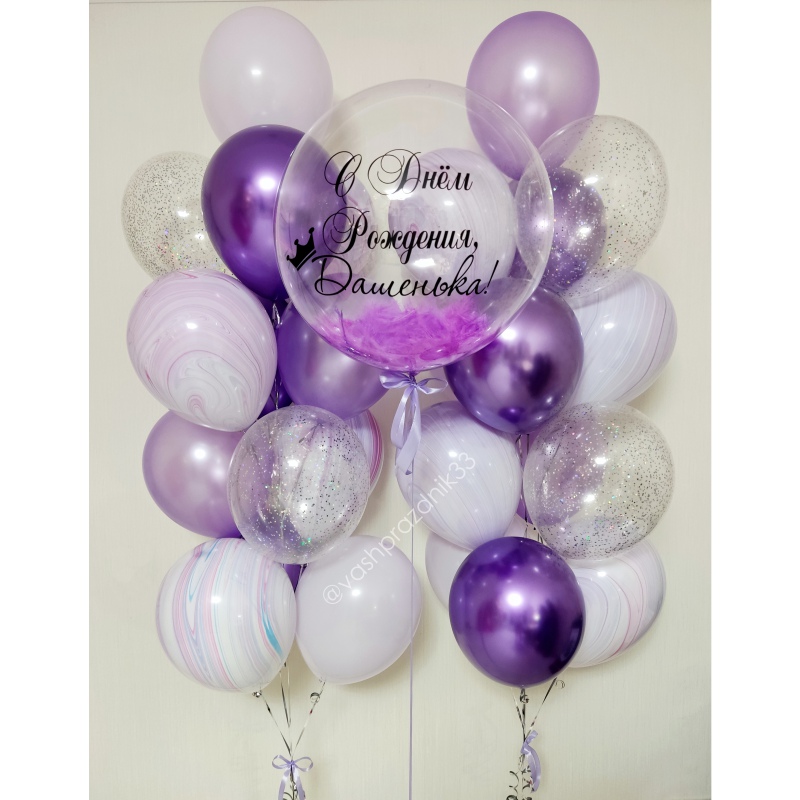 *Цветовая гамма любая, *Шары наполнены гелием, *Шары с обработкой, *Надпись на БАБЛС любая. |