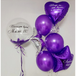 • Шар - МЕТАЛЛИК - 5 шт., • Шар - КОНФЕТТИ - 2 шт., • Шар - ЗВЕЗДА - 1 шт., • Шар - ЗВЕЗДА С НАДПИСЬЮ - 1 шт., • Шар - СЕРДЦЕ С НАДПИСЬЮ - 1 шт., • Шар - БАБЛС С ПЕРЬЯМИ - 1 шт. |