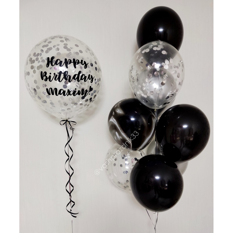 • Шар - ПАСТЕЛЬ - 3 шт., • Шар - АГАТ - 1 шт., • Шар - ХРОМ - 2 шт., • Шар - КОНФЕТТИ - 2 шт., • Шар - БОЛЬШОЙ С НАДПИСЬЮ - 1 шт. |