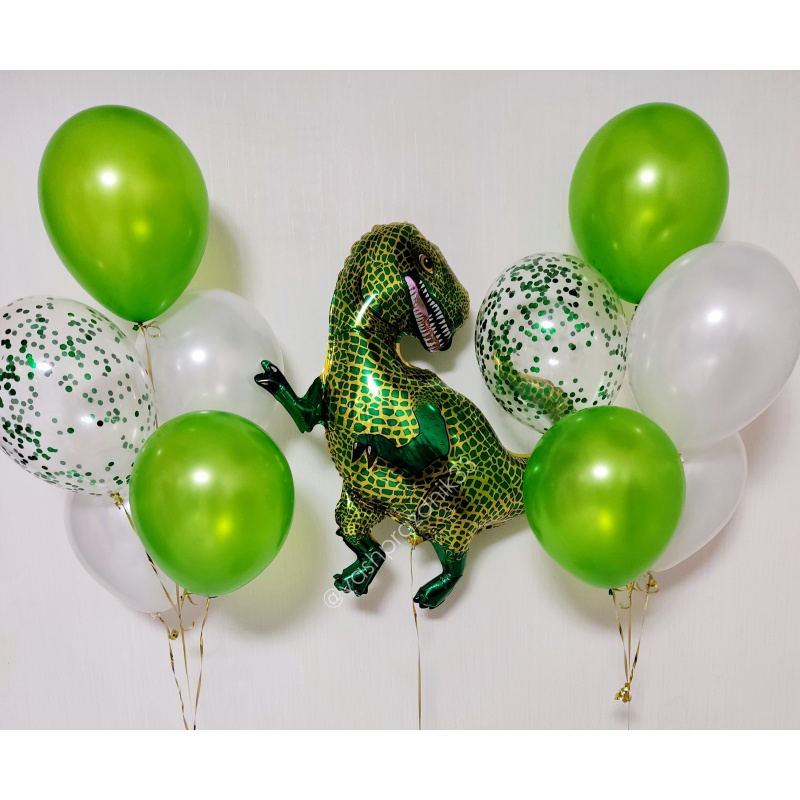 • Шар - МЕТАЛЛИК - 8 шт., • Шар - КОНФЕТТИ - 2 шт., • Шар - ФИГУРА, ТИРАННОЗАВР - 1 шт. |