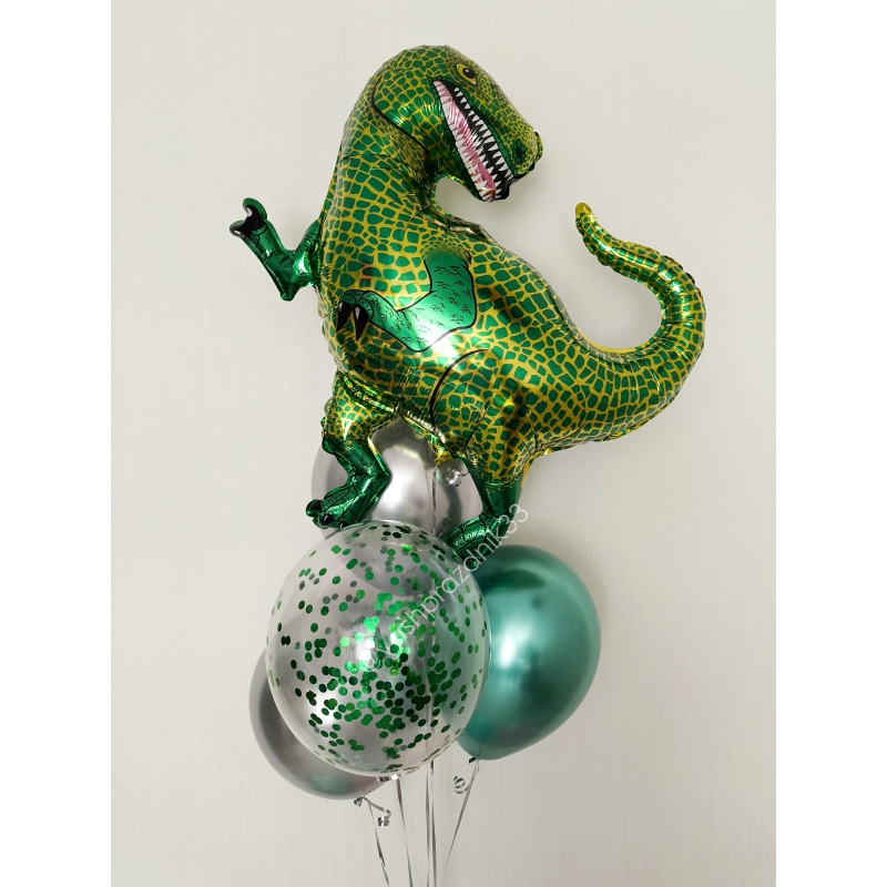 • Шар - ХРОМ - 3 шт., • Шар - КОНФЕТТИ - 1 шт., • Шар - ФИГУРА, ТИРАННОЗАВР - 1 шт. |