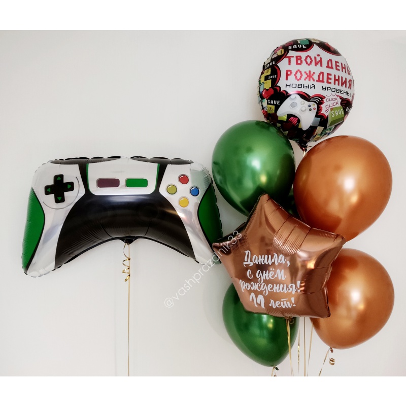 • Шар - ХРОМ - 5 шт., • Шар - КРУГ, ПИКСЕЛИ - 1 шт., • Шар - ЗВЕЗДА С НАДПИСЬЮ - 1 шт., • Шар - ФИГУРА, ДЖОЙСТИК - 1 шт. |