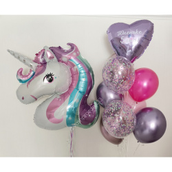 • Шар - ПАСТЕЛЬ - 2 шт., • Шар - ХРОМ - 4 шт., • Шар - КОНФЕТТИ - 2 шт., • Шар - СЕРДЦЕ С НАДПИСЬЮ - 1 шт., • Шар - ФИГУРА, ЕДИНОРОГ - 1 шт. |