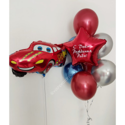 • Шар - ХРОМ - 7 шт., • Шар - ЗВЕЗДА С НАДПИСЬЮ - 1 шт., • Шар - ФИГУРА, ГОНОЧНАЯ МАШИНА - 1 шт. |