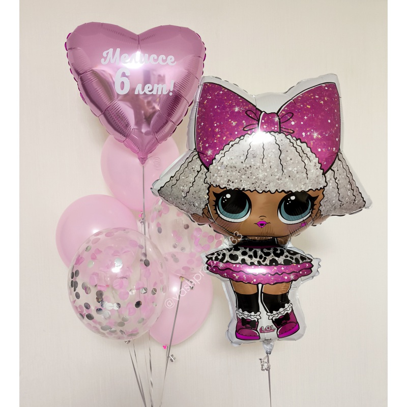 • Шар - ПАСТЕЛЬ - 3 шт., • Шар - КОНФЕТТИ - 2 шт., • Шар - СЕРДЦЕ С НАДПИСЬЮ - 1 шт., • Шар - ФИГУРА, КУКЛА ЛОЛ, ДИВА - 1 шт. |