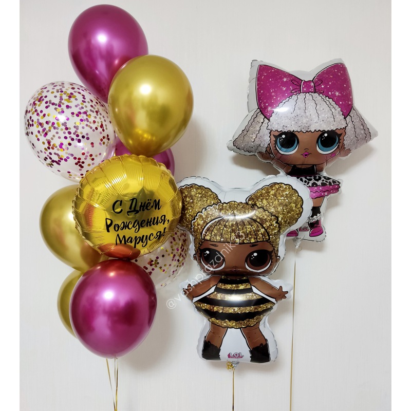 • Шар - ХРОМ - 6 шт., • Шар - КОНФЕТТИ - 2 шт., • Шар - КРУГ С НАДПИСЬЮ - 1 шт., • Шар - ФИГУРА, ДИВА - 1 шт., • Шар - ФИГУРА, КОРОЛЕВА - 1 шт. |