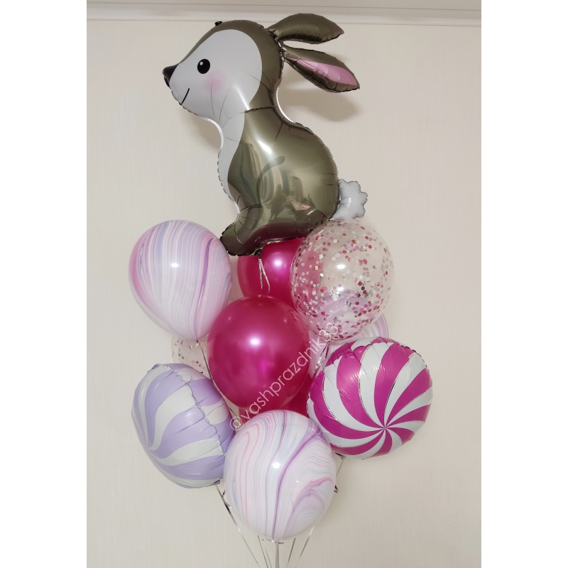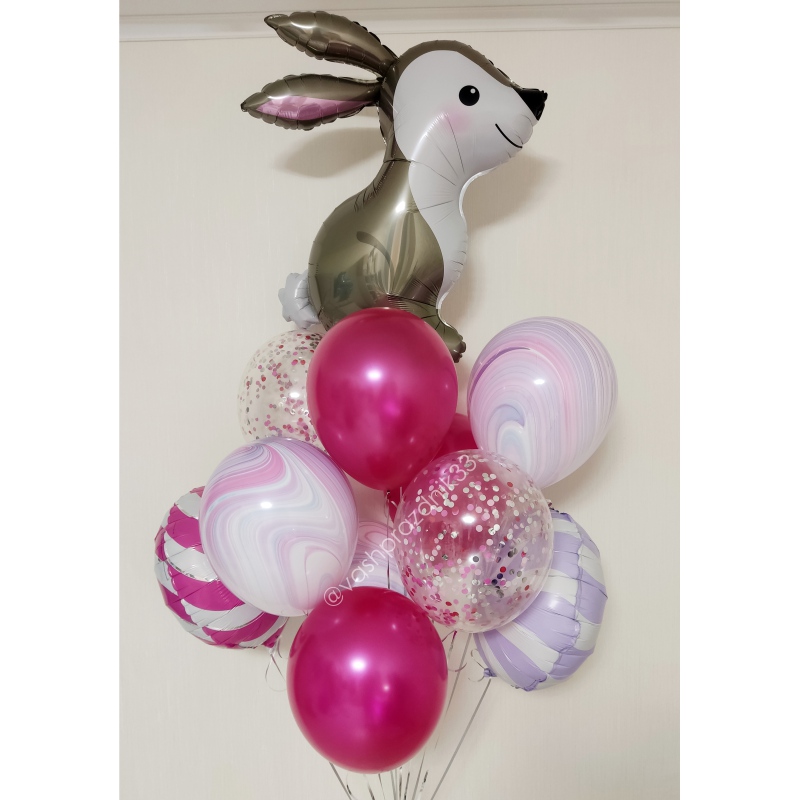 • Шар - МЕТАЛЛИК - 3 шт., • Шар - СУПЕР АГАТ - 3 шт., • Шар - КОНФЕТТИ - 2 шт., • Шар - КРУГ, ЛЕДЕНЕЦ - 2 шт., • Шар - ФИГУРА, ЛЕСНОЙ ЗАЙЧИК - 1 шт. |