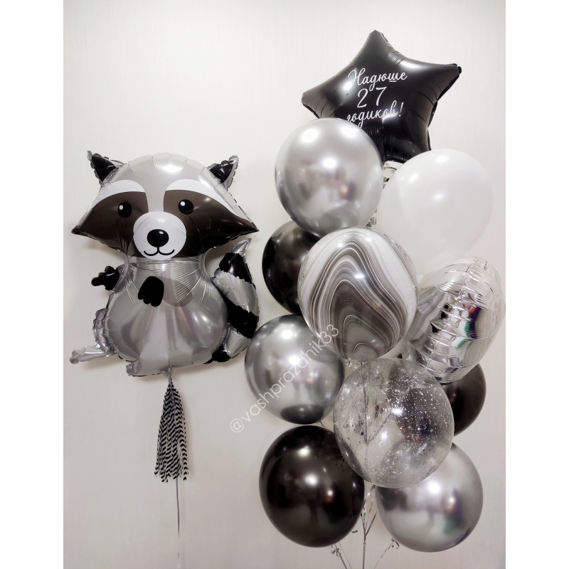• Шар - ПАСТЕЛЬ - 2 шт., • Шар - ХРОМ - 6 шт., • Шар - КОНФЕТТИ - 2 шт., • Шар - СУПЕР АГАТ - 1 шт., • Шар - СЕРДЦЕ - 1 шт., • Шар - ЗВЕЗДА С НАДПИСЬЮ - 1 шт., • Шар - ФИГУРА, ЛЕСНОЙ ЕНОТ - 1 шт. |