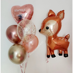 • Шар - МЕТАЛЛИК - 1 шт., • Шар - ХРОМ - 2 шт., • Шар - КОНФЕТТИ - 1 шт., • Шар - СЕРДЦЕ С НАДПИСЬЮ - 1 шт., • Шар - ФИГУРА, ЛЕСНОЙ ОЛЕНЬ - 1 шт. |