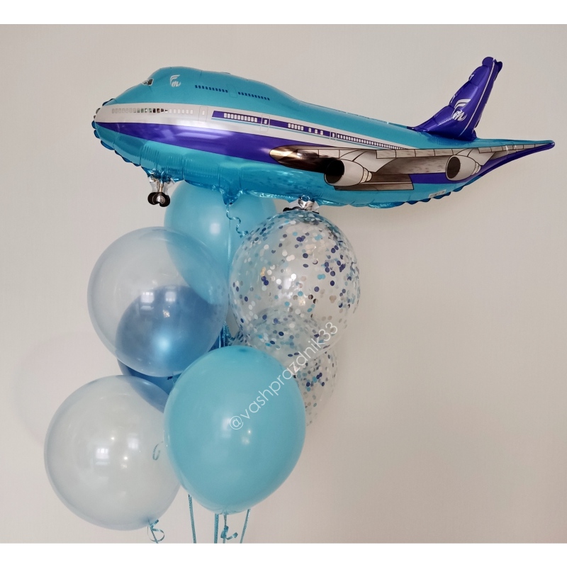 • Шар - ПАСТЕЛЬ - 2 шт., • Шар - ХРУСТАЛЬНЫЙ - 1 шт., • Шар - ХРОМ - 1 шт., • Шар - КОНФЕТТИ - 2 шт., • Шар - ФИГУРА, САМОЛЁТ - 1 шт. |