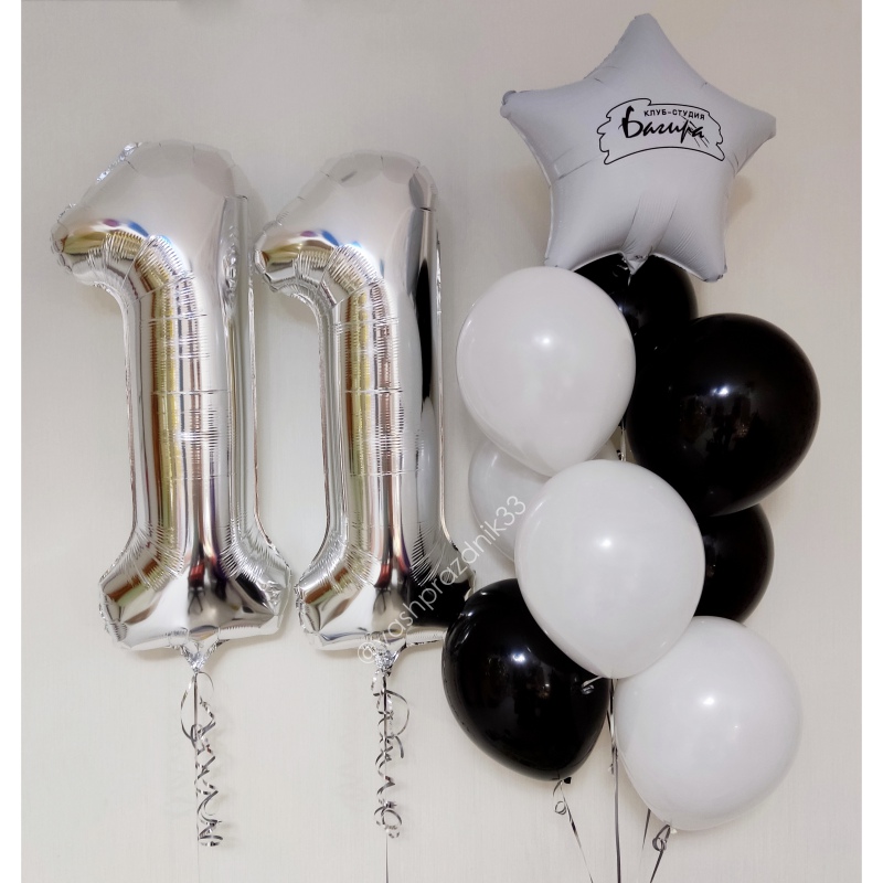 • Шар - ПАСТЕЛЬ - 8 шт., • Шар - ЗВЕЗДА С НАДПИСЬЮ - 1 шт., • Шар - ЦИФРА, СЕРЕБРО - 2 шт. |