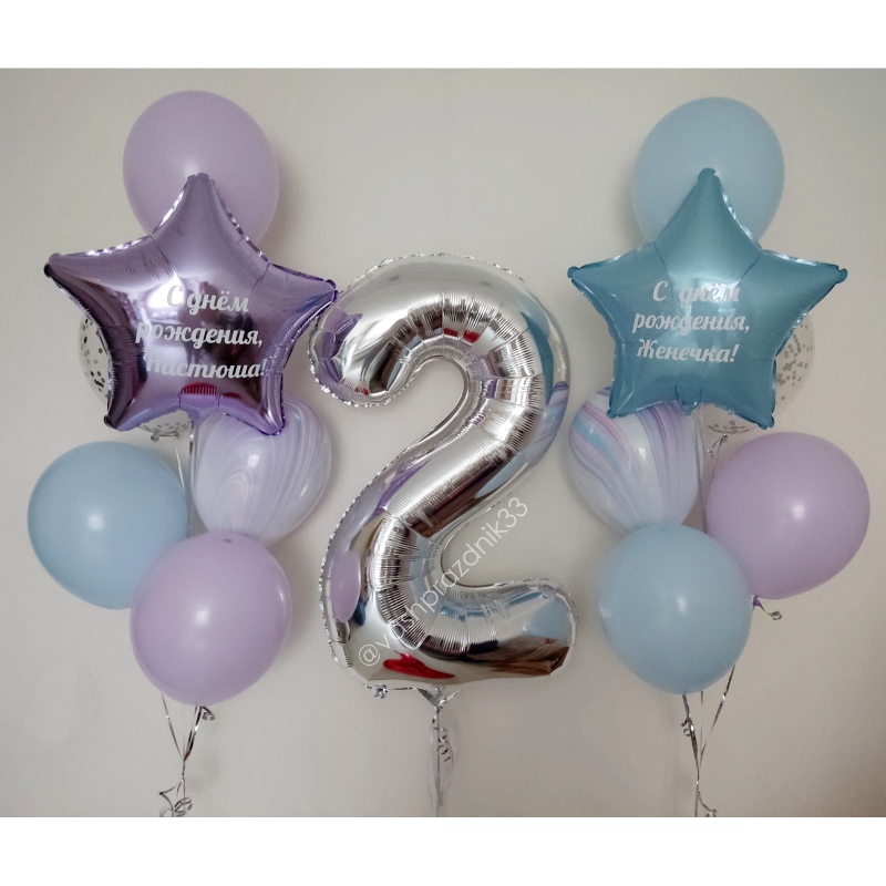 *Цветовая гамма любая, *Шары наполнены гелием, *Шары с обработкой, *Надписи на ЗВЕЗДАХ любые, *Цифра любая от 1 до 9. |