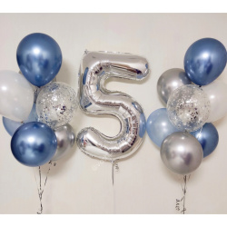 • Шар - МЕТАЛЛИК - 4 шт., • Шар - МЕТАЛЛИК - 8 шт., • Шар - КОНФЕТТИ - 2 шт., • Шар - ЦИФРА, СЕРЕБРО - 1 шт. |
