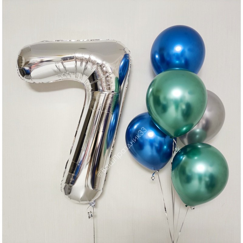 • Шар - ХРОМ - 5 шт., • Шар - ЦИФРА, СЕРЕБРО - 1 шт. |