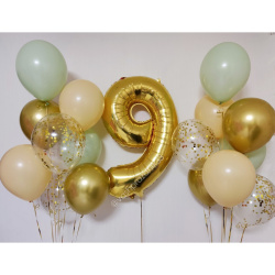 • Шар - ПАСТЕЛЬ - 8 шт., • Шар - ХРОМ - 4 шт., • Шар - КОНФЕТТИ - 4 шт., • Шар - ЦИФРА, ЗОЛОТО - 1 шт. |