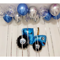 • Шар - ХРОМ С ДОЖДИКОМ - 8 шт., • Шар - КОНФЕТТИ С ДОЖДИКОМ - 4 шт., • Шар - ФИГУРА, БОЛЬШОЙ СИНИЙ ТРАКТОР - 1 шт. |