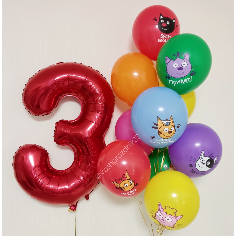 • Шар - ПАСТЕЛЬ - 3 шт., • Шар - ТРИ КОТА - 7 шт., • Шар - ЦИФРА, КРАСНАЯ - 1 шт. |