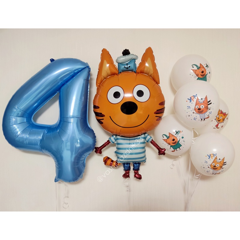 • Шар - ТРИ КОТА - 5 шт., • Шар - ФИГУРА, КОРЖИК - 1 шт., • Шар - ЦИФРА - 1 шт. |