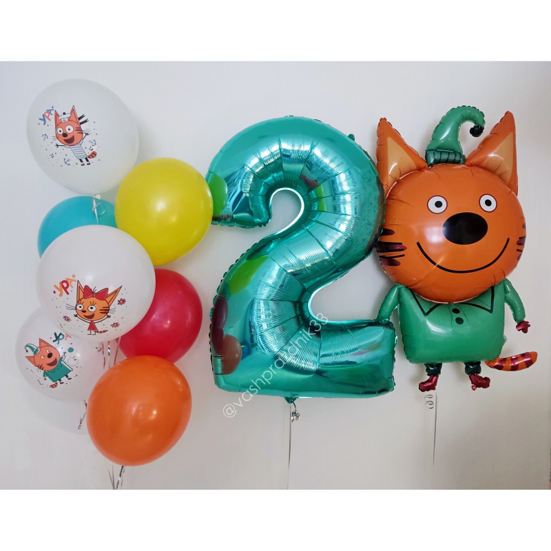 • Шар - ПАСТЕЛЬ - 4 шт., • Шар - ТРИ КОТА - 3 шт., • Шар - ФИГУРА, КОМПОТ - 1 шт., • Шар - ЦИФРА - 1 шт. |