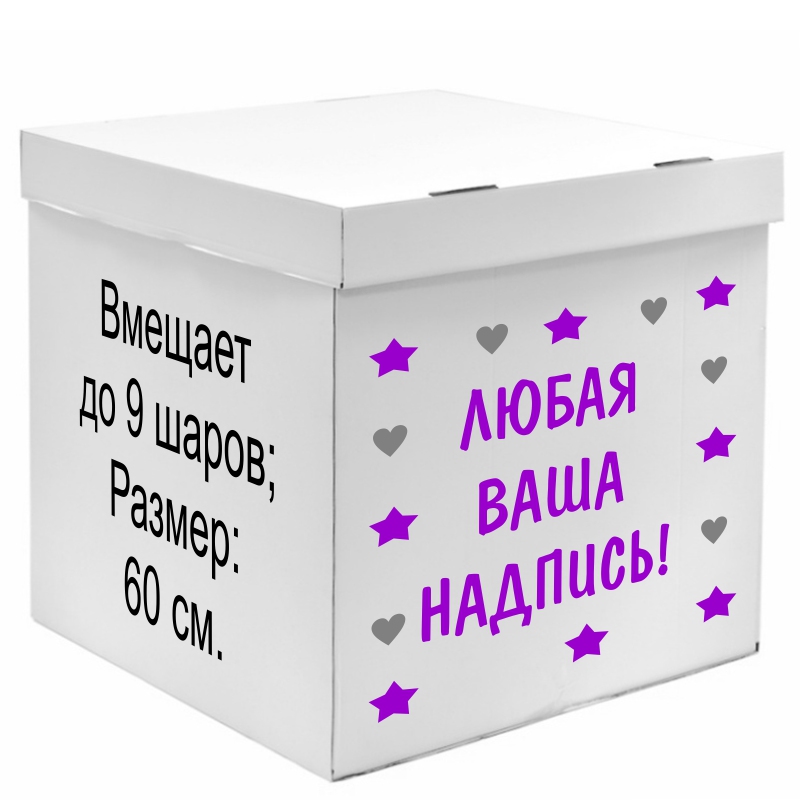• Коробка - БЕЛАЯ, 60 СМ., • Оформление - БАНТ и НАДПИСЬ. |