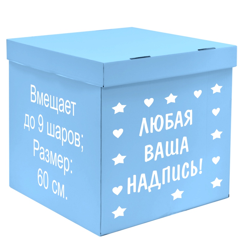 • Коробка - ГОЛУБАЯ, 60 СМ., • Оформление - БАНТ и НАДПИСЬ. |