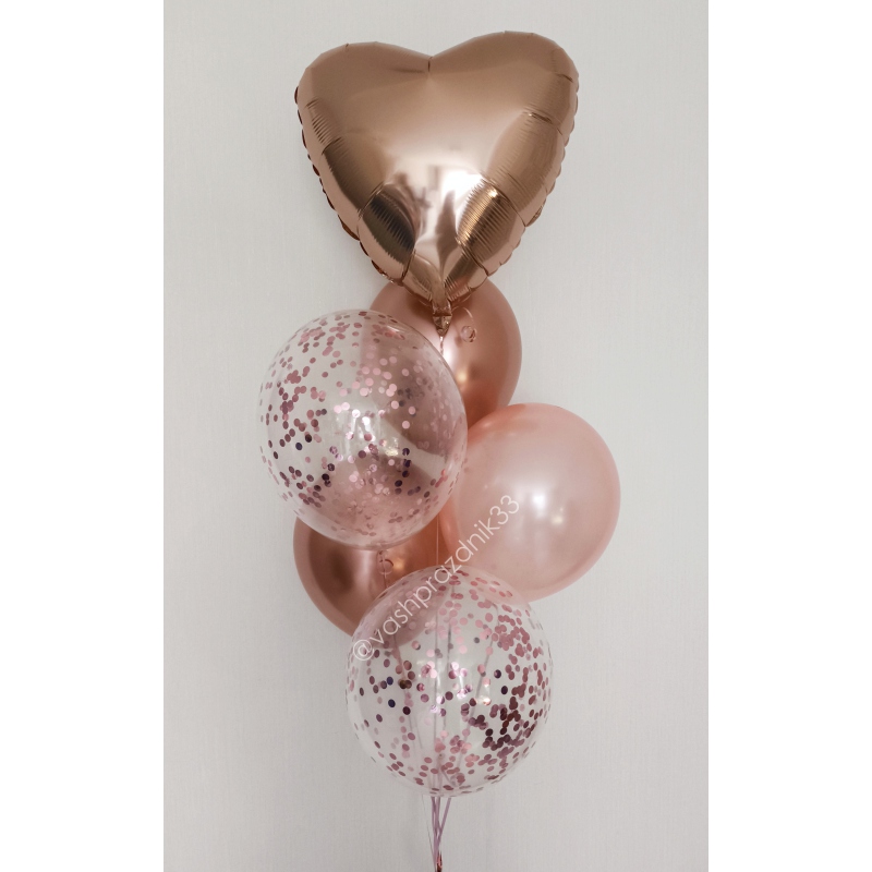 • Шар - МЕТАЛЛИК - 1 шт., • Шар - ХРОМ - 2 шт., • Шар - КОНФЕТТИ - 2 шт., • Шар - СЕРДЦЕ - 1 шт. |