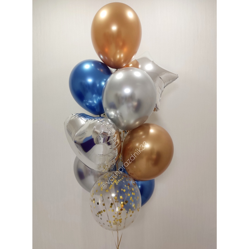 • Шар - ХРОМ - 6 шт., • Шар - КОНФЕТТИ - 2 шт., • Шар - СЕРДЦЕ - 1 шт., • Шар - ЗВЕЗДА - 1 шт. |