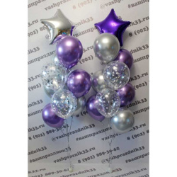 • Шар - ХРОМ - 6 шт., • Шар - КОНФЕТТИ - 2 шт., • Шар - ЗВЕЗДА - 1 шт. |
