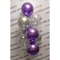 • Шар - ХРОМ - 6 шт., • Шар - КОНФЕТТИ - 2 шт. |
