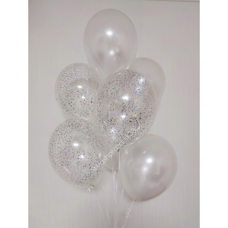 • Шар - ПЕРЛАМУТР - 4 шт., • Шар - КОНФЕТТИ - 3 шт. |