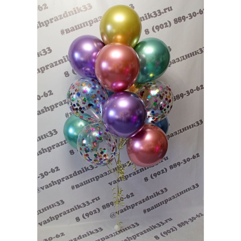 • Шар - ХРОМ - 10 шт., • Шар - КОНФЕТТИ - 5 шт. |