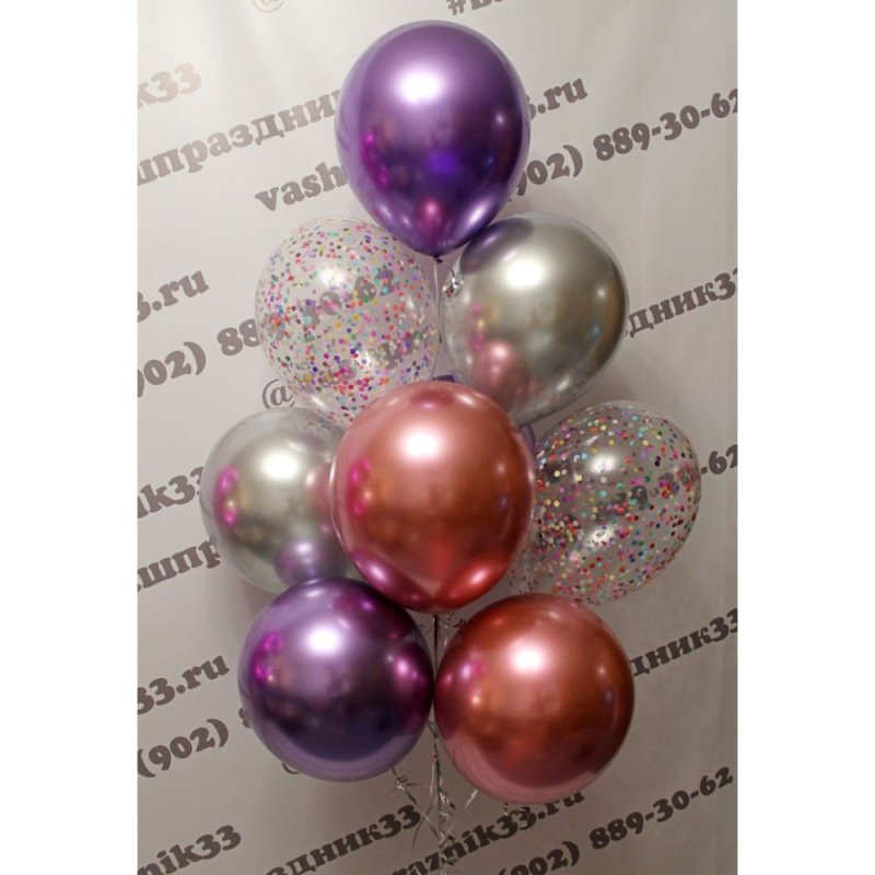 • Шар - ХРОМ - 8 шт., • Шар - КОНФЕТТИ - 2 шт. |